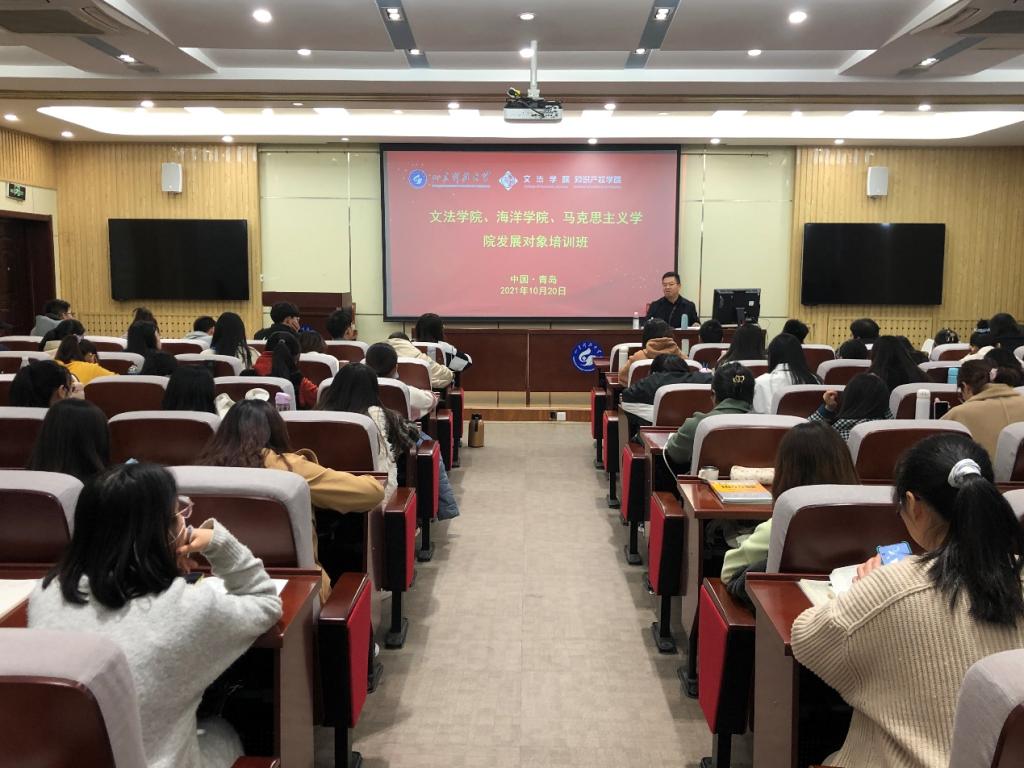 在喜迎中国共产党成立100周年之际,为教育引导党员发展对象学习党的历史、加强党性修养,10月20日,伟德victor1946第五期党员发展对象培训班在J9-135报告厅开讲,校宣传部副部长秦晓钟应邀为伟德victor1946、海洋公司、马克思主义公司党员发展对象做“回顾百年党建”专题讲座。