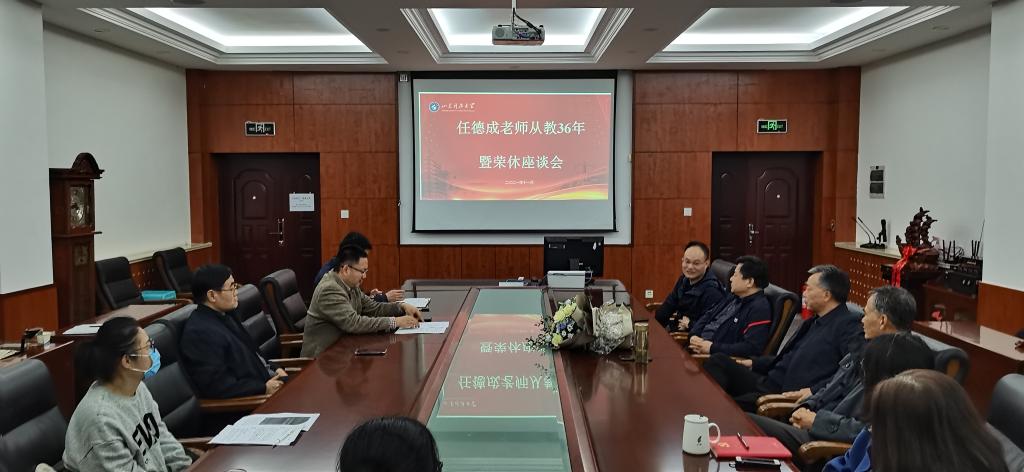 11月16日,伟德victor1946举办任德成老师从教36年暨荣休座谈会。公司班子成员、系(办公室)主任、部分教师代表参加了座谈会,会议由党委书记潘伟国主持。