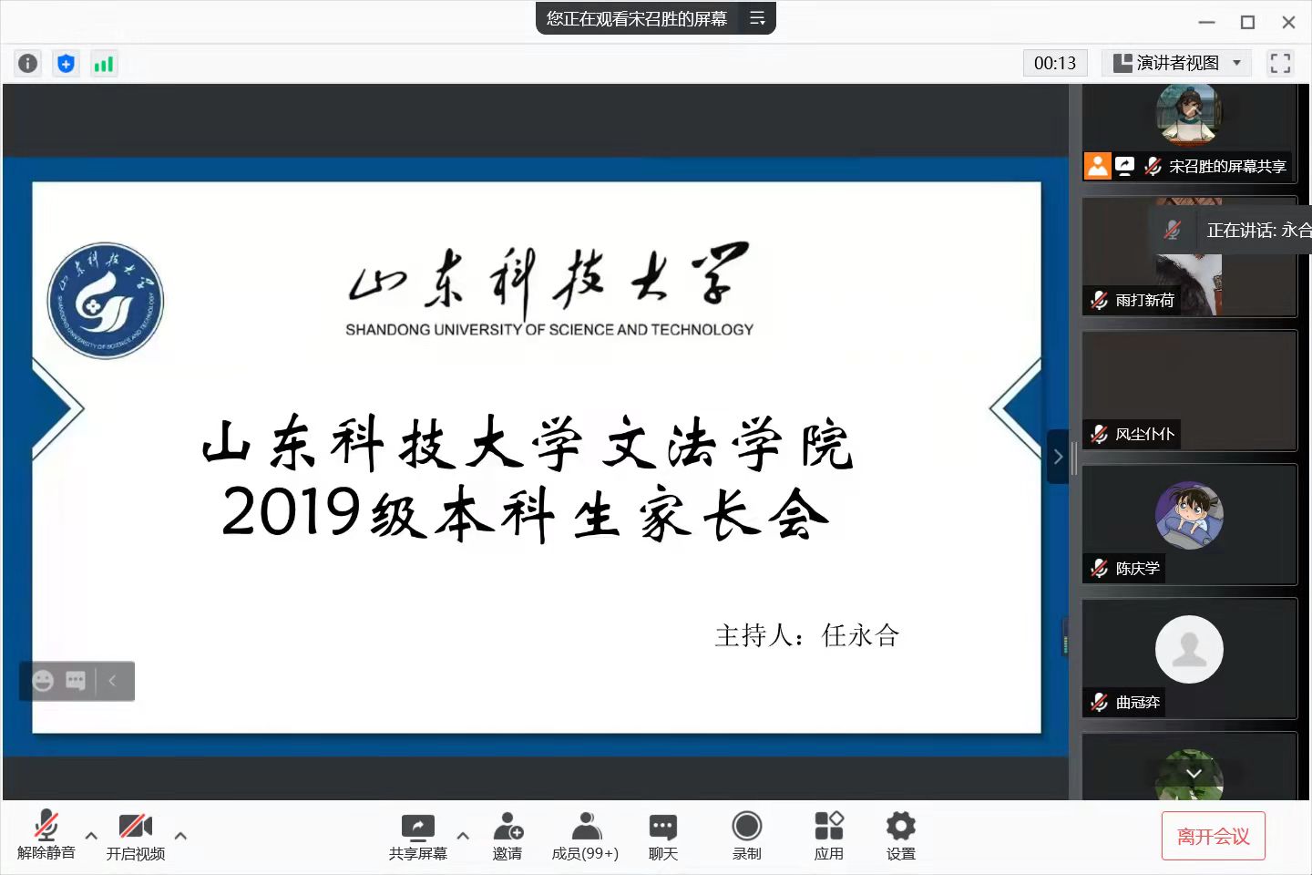 2019级辅导员任永合从第二课堂成绩预警、职业生涯规划、家校共育、心理健康与安全教育等四个方面向参会家长展开交流,并结合实际事例,对员工未来发展的三大方向——考研、考公、找工作进行了利弊分析和答疑解惑。家长们在此次交流会中也积极参与发言,针对考研择校问题、选调生的条件和要求以及找工作所需要的各方面综合素质等问题任永合都进行了耐心分析和解答。