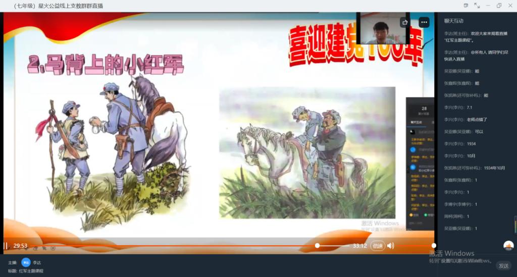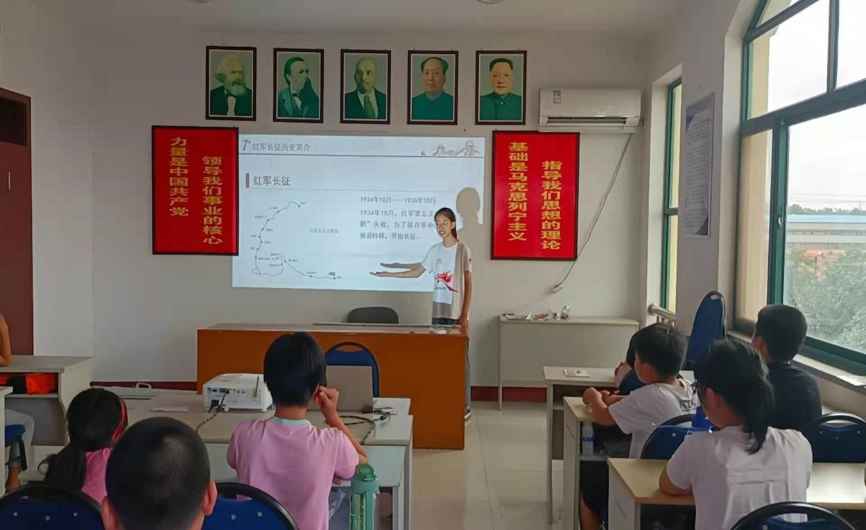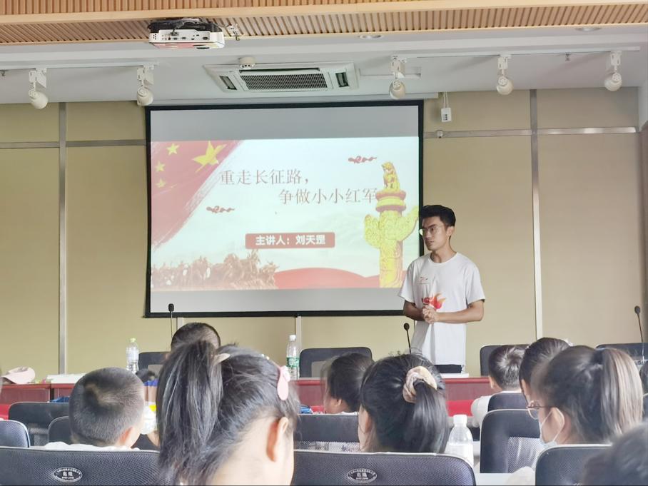 在讲述党史的同时,星火公益协会的支教队员们也开展了“小小红军故事会”趣味课程,通过生动形象的红军故事,把党的历史以故事的形式传达给同学们。