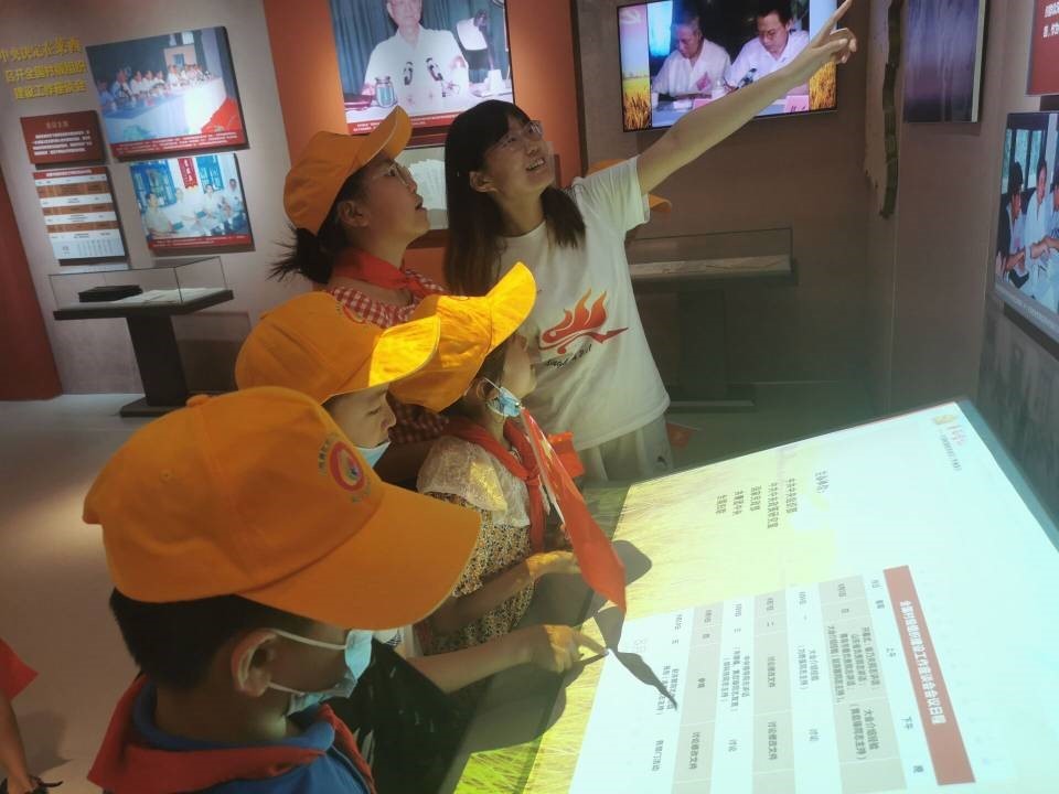 在莱西市河头店镇,支教队联合小雨滴社会服务中心,带领同学们参观“红色记忆展”。孩子们虽未切身经历党的艰苦岁月和发展过程,但在参观的过程中孩子们通过认真倾听支教队员们对于党史的讲解,详细观看了馆内的展板,真切的感悟到先辈的不易,现如今美好生活的不易。支教讲解员李雨情谈到:“在讲解的过程中感受到孩子们的好奇心和求知欲,深刻的感受到了孩子们浓浓的爱国热情和爱党决心,同时自己也被党的百年奋斗历程而感到震撼,希望并祝福我们的党永葆青春、伟大的祖国繁荣昌盛!”