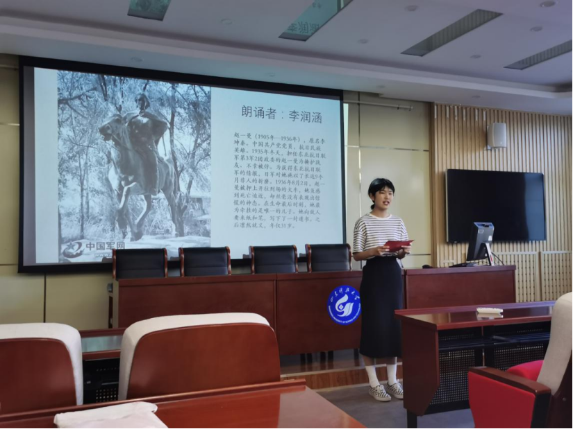 本次活动中,中文系师生诵读了多篇红色经典诗文:诵读了三封红色家书,分别是:《赵一曼家书》《陈觉家书》《赵云霄家书》;诵读了红色经典小说《红岩》“我的自白书”“绣红旗”“江姐”等经典片段;诵读了方志敏在狱中写下的《可爱的中国》;汉语言文学2020级集体诵读了《青春中国》;最后中文系师生共同诵读了毛泽东写于长征期间的红色经典诗歌《七律·长征》。
