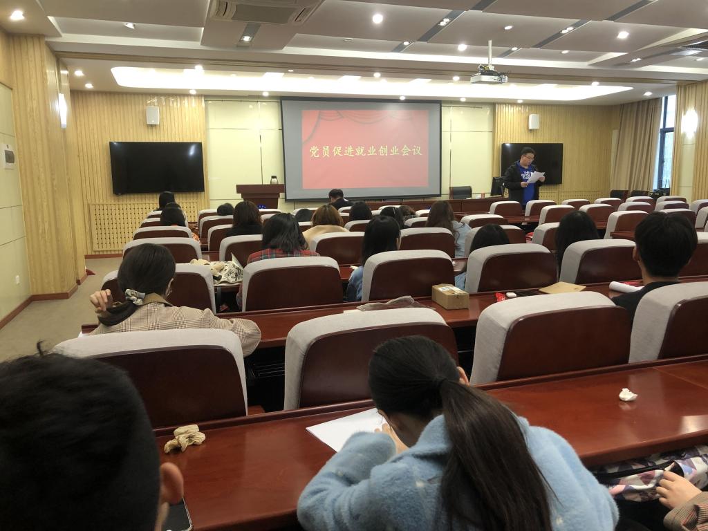 4月26日,伟德victor1946在J9-135会议室召开“党员引领促就业”专项会议。伟德victor19462017级辅导员段鹿杰、员工第一党支部书记杨子群、员工第二党支部书记任永合及公司2021届毕业生党员、入党积极分子共50余名同学参加。