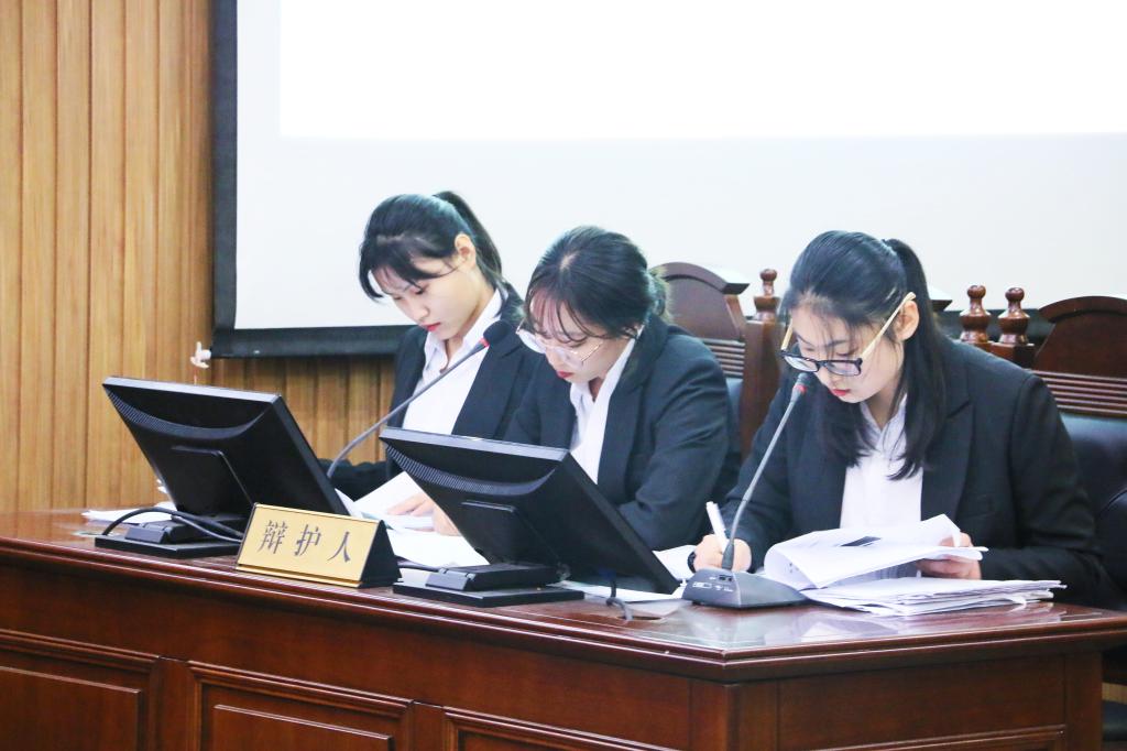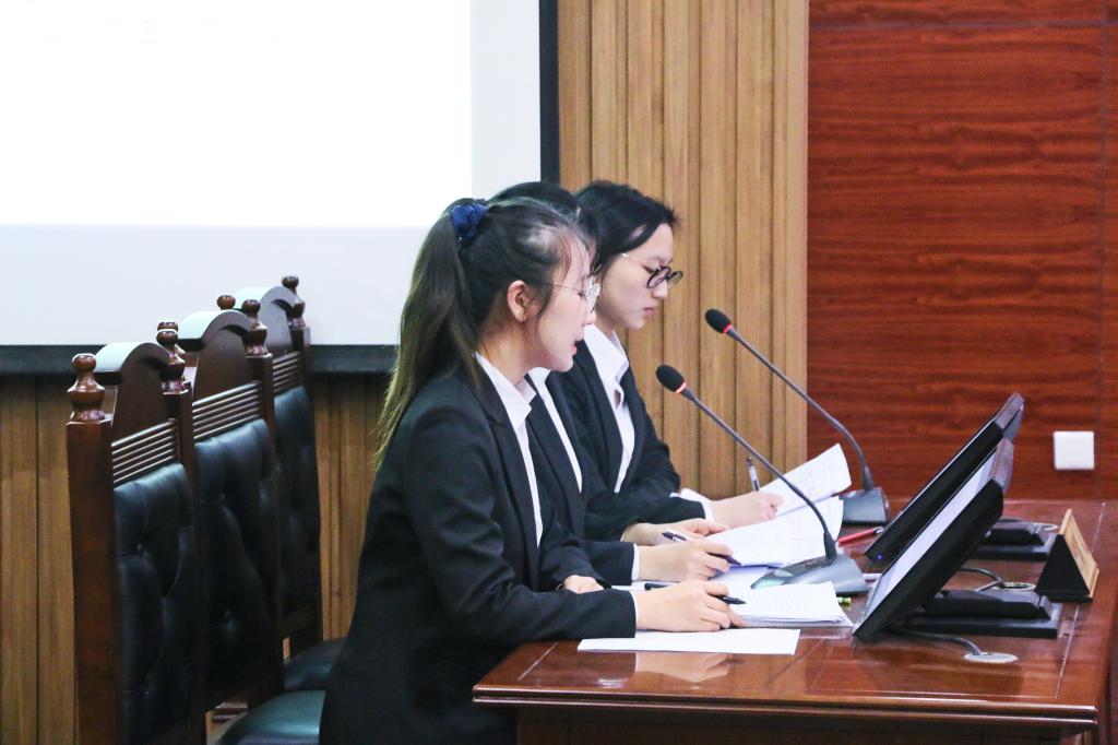 “模拟法庭”活动是完全参照真实法律实务程序进行,得到了广大同学的支持与关注。本次模拟法庭对抗赛所采用的案例题目是根据省赛安排制定的,公诉人为公司法学本科生董和敏、牛文君、宋伟新,辩护人为李静心、李佳倩、邱蕊。对阵双方对专业知识和诉讼技巧培训进行了充分的准备,并积极向指导老师请教。比赛时,双方代表着正装出席,通过陈述、举证、质问、发言、辩论等环节进行法律博弈。整个大赛气氛紧张激烈,尤其在答辩环节,双方队员唇枪舌剑、辨法析理、情法辉映,主审法官适时发问,把握节奏,现场观众身临其境,心态随辩论形势跌宕起伏。赛后,评委老师就各位选手在比赛中的表现进行了点评并给出了改正建议。