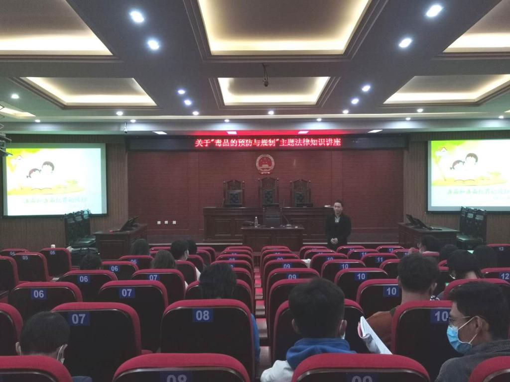 10月25日,伟德victor1946在J14模拟法庭开展毒品预防宣传教育活动,法学系主任吴立志应邀为员工作《毒品的预防与规制》的报告。