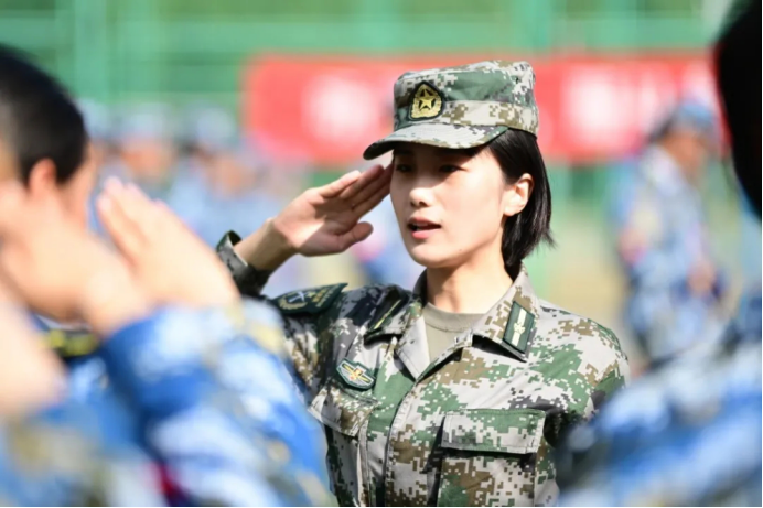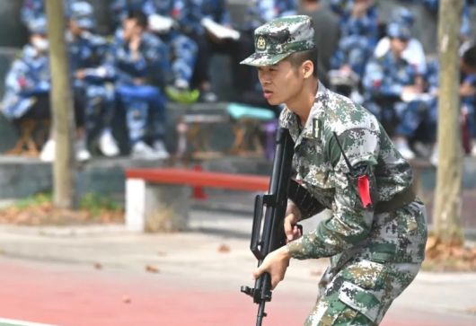 有这么一群人,纪律严明,精神昂扬。他们与新生们同甘共苦,他们使新煅的钢铁更加坚强。他们,是真正的战士!当我们看向他们时,仿佛屹立于此的不再只是一个矫健有力的青年,更是一座座巍峨的山峰,一支支撑起祖国大厦的国之脊梁。他们眼中涌动的火焰淬炼着两把利剑,仿佛目之所及处皆为沙场。这,才是我们真正的榜样。