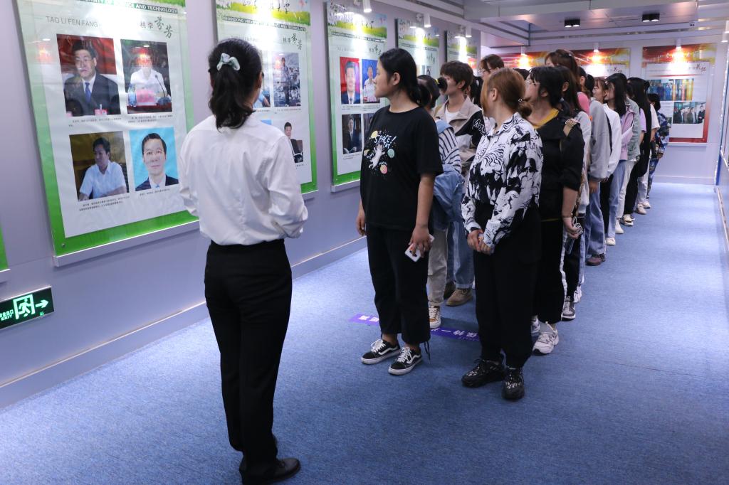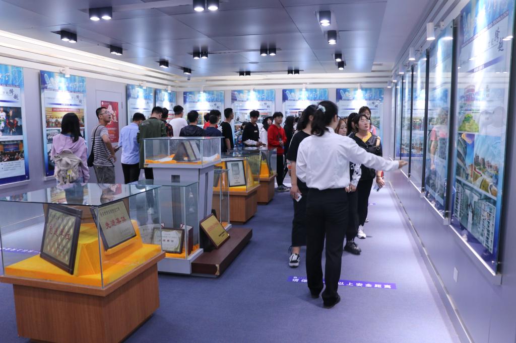 在讲解员的带领下,同学们有序进入校史馆,依次参观“殷切关怀”、“集团领导”、“鸿基初创”等八个展厅,林立的展板、各类国家级荣誉、卓越员工等一幕幕场景映入新生眼帘,他们仔细聆听讲解员对科大历史的讲述、领略科大优秀学子的风采、感受科大对“惟真求新”校训的践行。作为员工科技创新活动代表作之一的“科技之珠”,吸引了大家的眼球,经讲解员讲解,同学们认识到公司优质的办学资源、雄厚的团队力量以及科大学子顽强拼搏的奋斗精神。