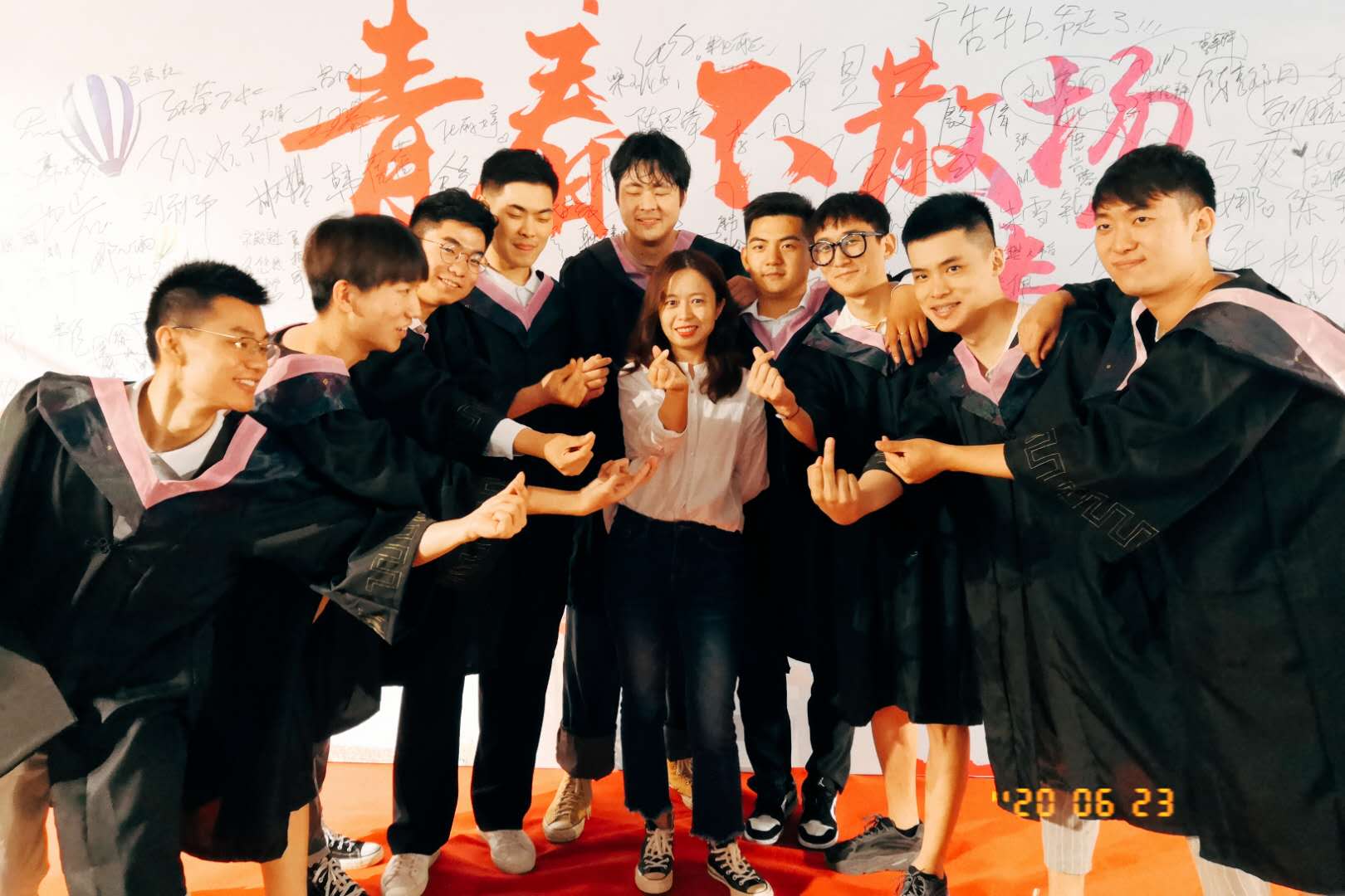 中文系毕业生为老师送上鲜花(供图:吴鹏老师 王志华老师)