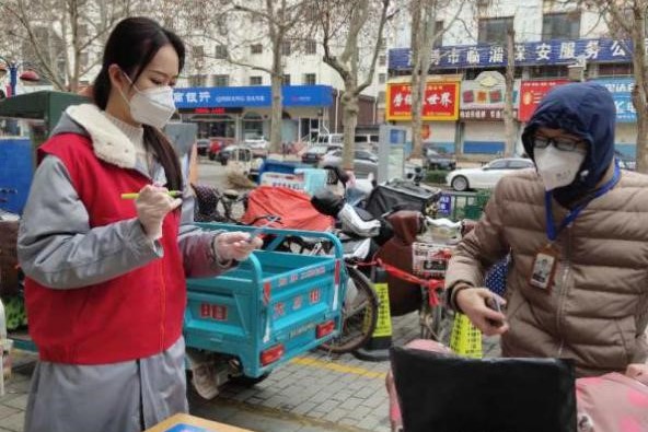 汉语言文学2017级的刘莹雪同学作为一名老员工预备党员,在做好个人防护的前提下,从大年初二就主动参与山东省淄博市临淄区商场街社区的抗疫志愿服务。第一时间前往社区疫情监测点进行志愿服务工作,认真细致宣传疫情防护知识,并为来往人员测量体温,进行出入信息登记。在小区实施封闭管理后,快递一律实行无接触配送,为了方便居民取快递,减少聚集,他们专门设置快递放置点,有序保管。