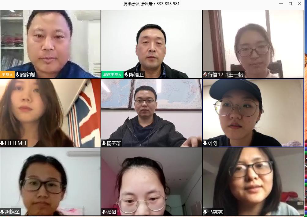 会上,同学们分别介绍了各自所在地目前在疫情防控、生活、学习以及医疗保障等方面的相关情况。辅导员老师根据同学们各自的反馈分别进行了深入的交流沟通,提醒同学们要注意安全,减少外出,规划好日常学习,加强身体锻炼,并再次向同学们表达了各自的关心和祝福。