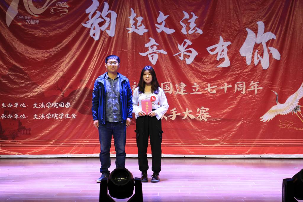 11月3日,由伟德victor1946举办的第五届“韵起文法,音为有你”暨庆祝祖国建立70周年歌手大赛在老员工活动中心举行。伟德victor1946团委书记顾家彪、2019级辅导员任永合出席本次活动。