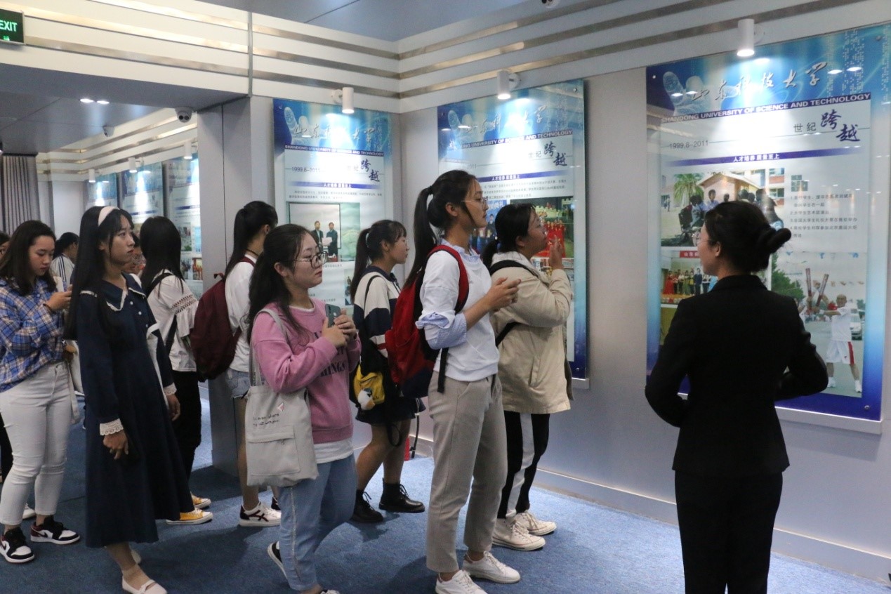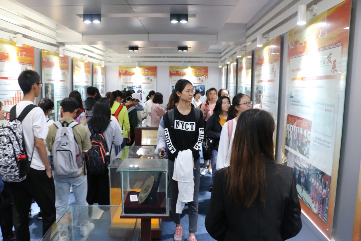 下午4点活动正式开始,19级新生在讲解员的带领下有序进入校史馆进行参观。讲解员带领同学们依次参观了“殷切关怀”、“公司领导”、“鸿基初创”等八个展厅,参观过程中,同学们紧跟讲解员的步伐,认真聆听科大的发展历程,感受着一代代科大人坚韧不拔、发愤图强的精神气概。浏览着公司几十年来记录风雨发展历程的奖杯、奖状和各种纪念品,切实感受到公司厚重而有活力的办学历史,深切感受到积淀深厚的科大文化,更进一步学习了“惟真求新”的科大精神与品格。
