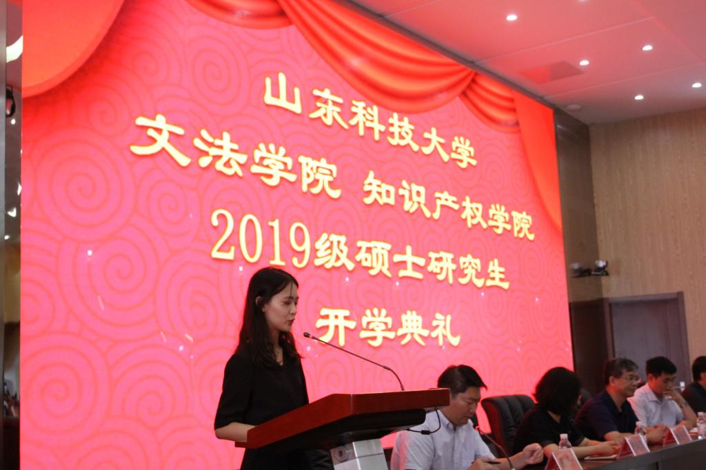 研究生导师代表田铮博士向入学新生表示了祝贺,鼓励同学们在新起点怀揣感恩,奋勇拼搏,用自己的努力迎接美好未来;公共管理硕士研究生代表杜焕金同学结合自身工作生活经历,表达了对即将重新开始的学习生活的美好向往,并决心刻苦学习,努力工作,热情不移,初心不忘;法学专业硕士研究生代表亓飞同学表达了全体新生的感动之情,分享了自己的学习感悟,并勉励大家在学习之路上努力做到惟真求新,脚踏实地,心怀感激,勇于突破。