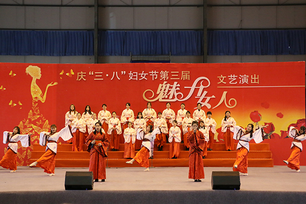 为丰富广大女职工的业余文化生活,活跃校园文化氛围,展现公司女教职工的风采,让女教职工过一个有意义的节日,经过精心准备,校工会于3月12日在体育馆举办庆“三·八”妇女节第三届文艺演出,各院工会女职工大展风采。