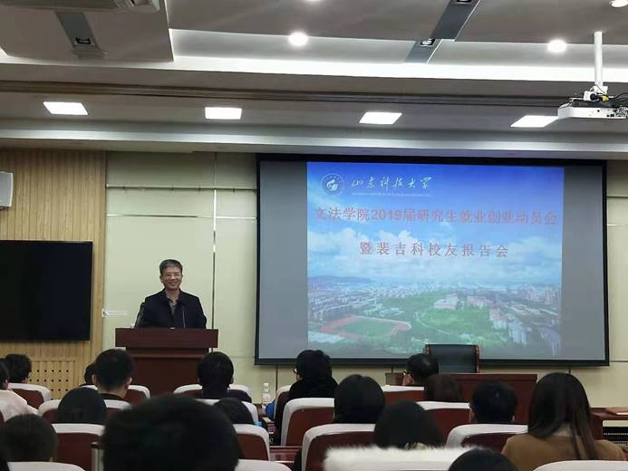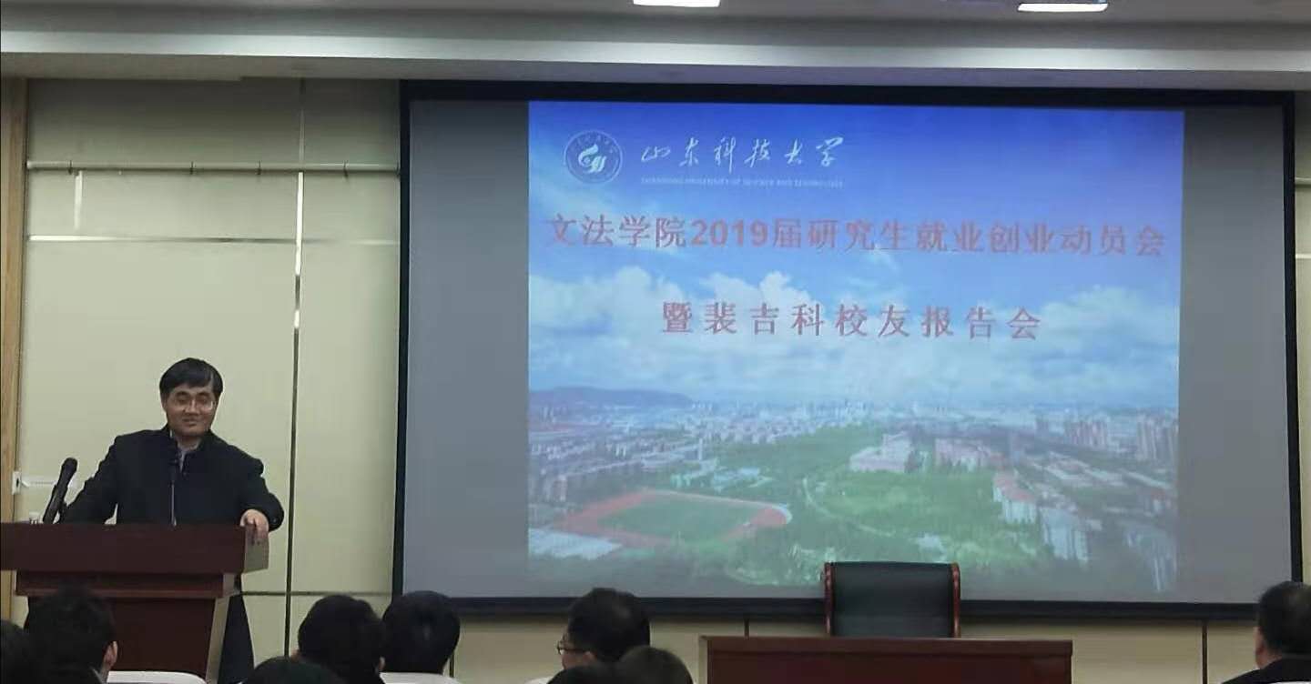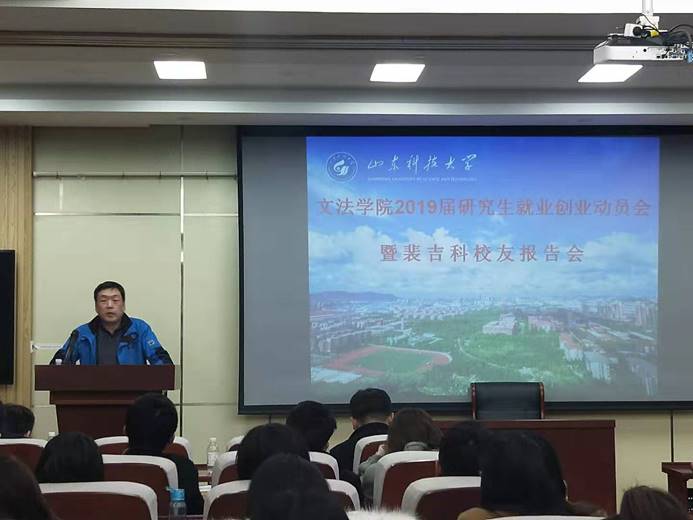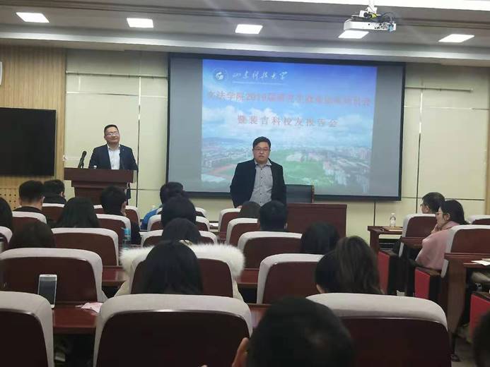 动员会上,裴吉科员工与同学们分享了自己20余年的工作阅历,讲述了自己辞去公职再就业的曲折心路历程和目前取得的成就,真挚的向同学们传授自己的人生经验,以期能对同学的职业生涯规划提供一些帮助。裴吉科员工在演讲结束后,与到会同学们展开热情互动,认真解答同学们提出的问题和面临的的困惑。