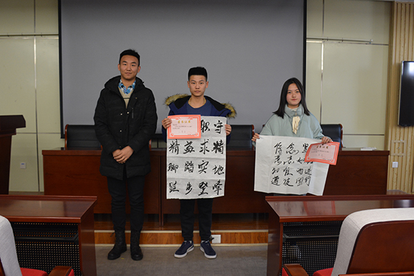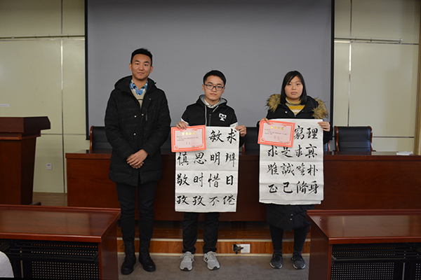 为进一步丰富老员工活,促进公司优良学风形成,伟德victor1946社团部联合望岳诗社于2018年11月16日至2018年11月30日举办“笔尖论道,翰墨传魂”书法比赛活动,并于12月18日在J9-135举行颁奖典礼,对优秀作品进行表彰。伟德victor1946员工会主席李磊出席了此次颁奖仪式,并为获奖同学颁奖。
