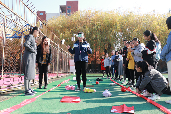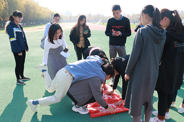 大赛包括坐地起身、地雷阵、几手几脚、传话筒、三人四足、扔沙包等项目。比赛开始前,裁判和工作人员提前适应场地、分配物资、熟悉工作流程、进行队伍划分。活动现场,各位队员积极踊跃,气氛十分热烈。“四人三足”游戏,各位队员在艰难的行进中培养了团结协作的意识;传话筒环节,队员以口型传递了信息,在无声中产生了一种信任与默契。整个活动都在阳光的沐浴下进行,赛场上洋溢着队员们的欢声笑语。