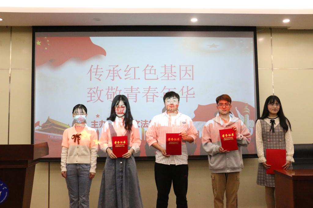 比赛中,选手们紧紧围绕主题,从“百年中国的复兴之路”“共青团的伟大征程”“新时代青年的责任与担当”等内容展开演讲,用饱满的热情、慷慨激昂的语言表达自己对共青团的热爱。一句句充满真情实感的诉说,一个个充满温度热度的故事,汇聚成“愿以吾辈之青春,守护这盛世之中华”“请党放心,强国有我”的铿锵誓言。大家对党的热爱,对祖国的感恩,对美好未来的憧憬,深深地感染了在场人员,赢得了评委及现场观众的掌声和共鸣。最终,汉语言20级晁艳阳拔得头筹获得比赛一等奖,法学21-3班袁馨玥、汉语言21级袁舒琪获得二等奖,法学21-2班王希斌、行政管理21-1班李子瑶、法学20-4班姜晓红获得三等奖。