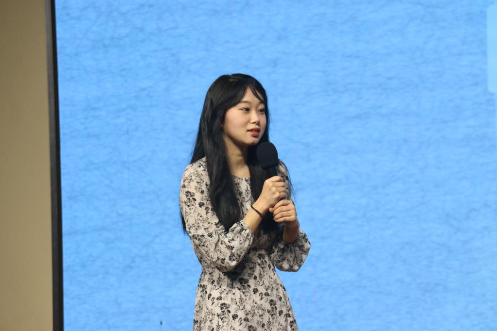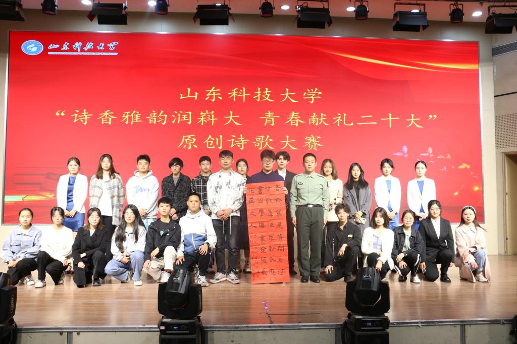 决赛现场,12位选手深情朗诵了自己的诗歌作品,说明了创作思路和灵感,将爱诗之情融入声音之中,娓娓道出一句句壮思云飞的诗句,让现场的评委老师以及观众感受到中华诗词之美。选手们就歌颂新时代、学习二十大、奋进新征程这一主题充分展现了自己的诗词积累和文化底蕴,才思泉涌,临场应变灵活,呈现了一场美轮美奂的诗歌盛宴。现场,中国文艺志愿者、山东省书法家协会会员、西海岸新区作家协会代表、砚耕书社社长胡勍谈到,绽放青春活力,展现嵙大风采,树立文化自信,领略诗歌之美,成为此次活动不可或缺的精神收获。