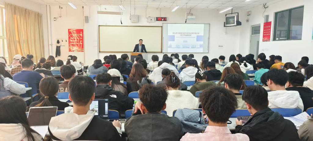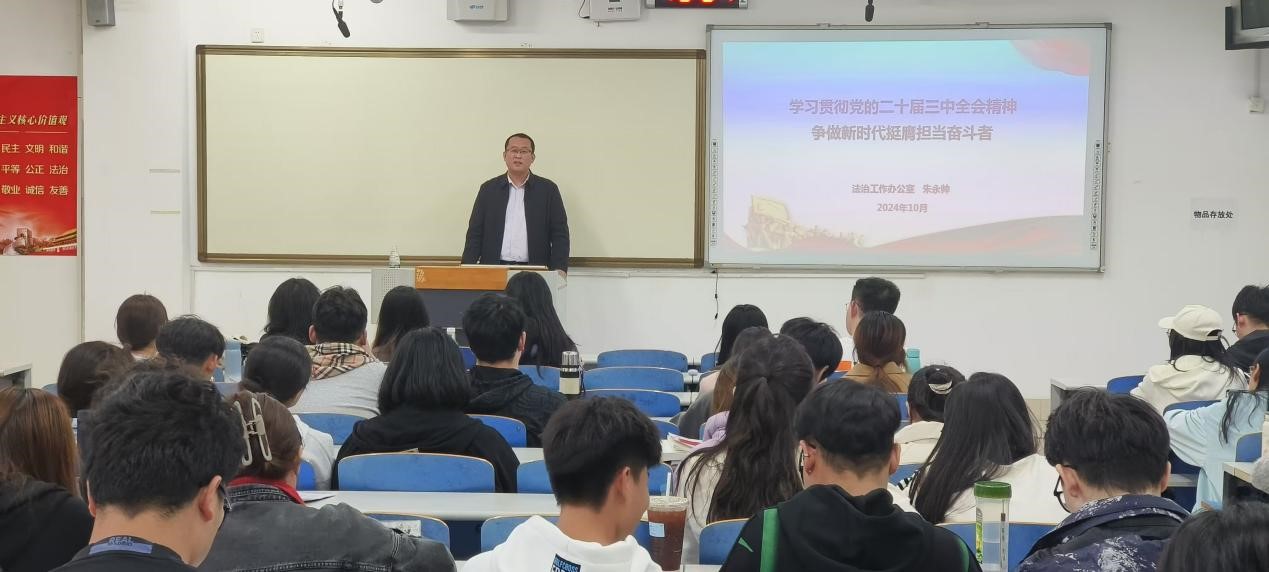 法治工作办公室副主任朱永帅以“学习贯彻党的二十届三中全会精神,做新时代挺膺担当奋斗者”为题,向同学们传达了党的二十届三中全会的会议精神,讲述了紧紧围绕推进中国式现代化进一步全面深化改革的重要意义,并对青年人寄予殷切期望。