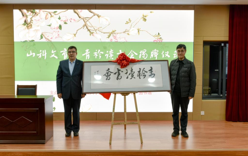 崔然和孙法柏共同为读书会揭牌