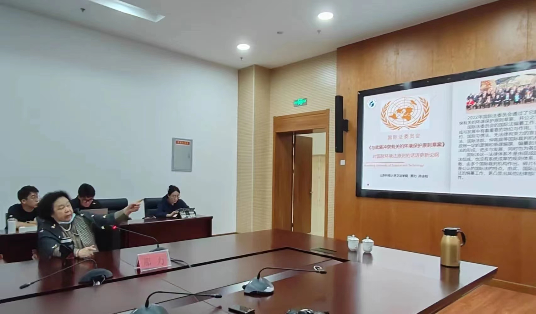 讲座伊始,那力老师从篇章结构的角度大致讲解了《与武装冲突有关的环境保护原则草案》(下称《原则草案》)的内容,并提炼出具有新意的十三个问题。那老师认为,《原则草案》是国际法视角下对上述问题的最新认知和论断,对国际环境法的发展、演进具有凝聚、确认、提升、发展之功。