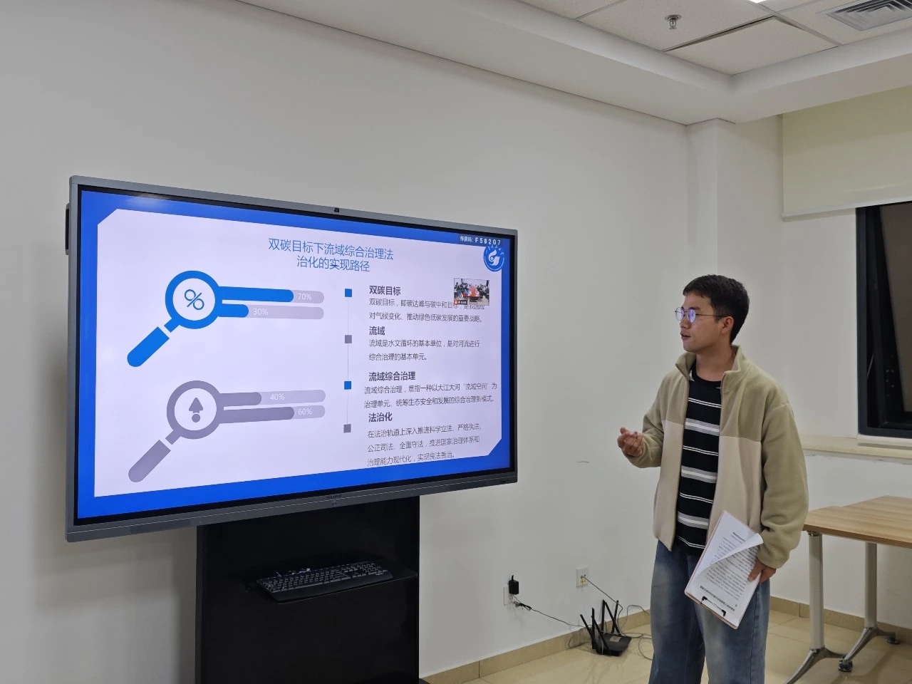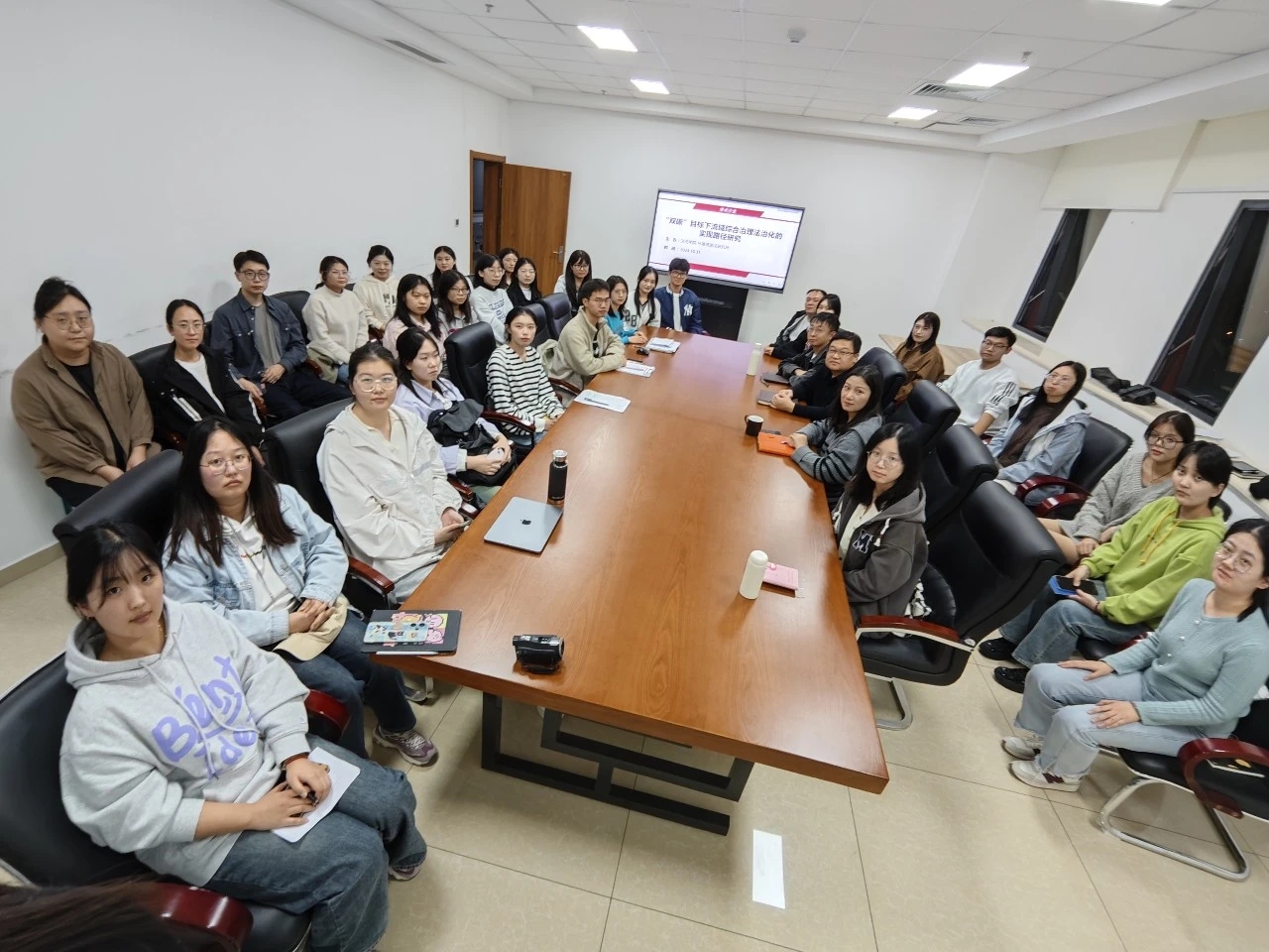 2024年10月31日晚7:00,伟德victor1946环境资源法研究所在图书信息中心1318会议室成功举办“‘双碳’目标下流域综合治理法治化的实现路径研究”学术沙龙。本次沙龙采取线上线下相结合的形式,包括“主题发言”“自由讨论”和“教师点评”三个环节,秘明杰、郑泽宇、杨攀、凌欣、刘晓希五位老师出席沙龙,环境资源法研究所30余名法学硕士和法律硕士同学参加活动。