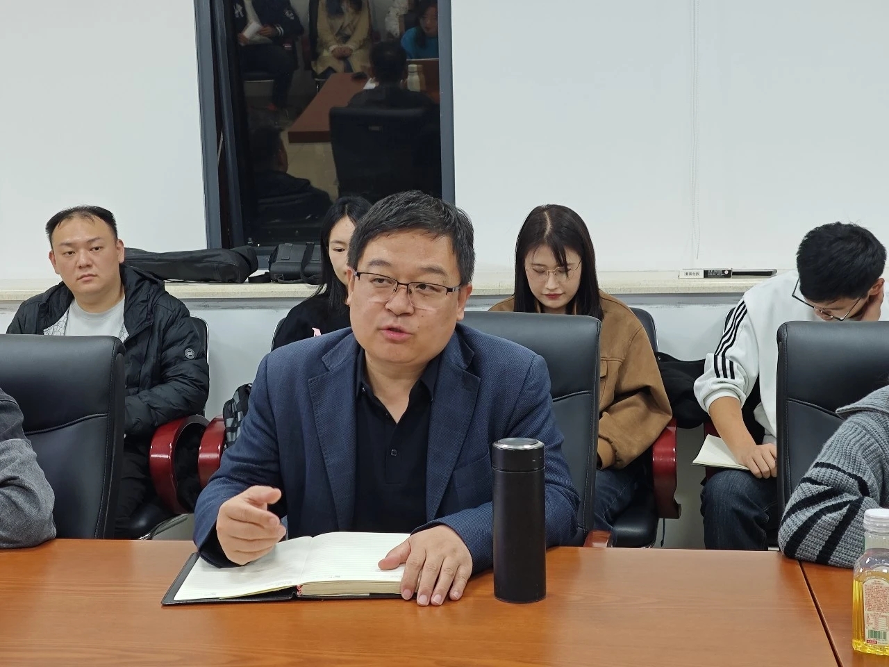 在自由讨论环节,同学们就自己的疑惑进行了提问交流。刘名轩同学提出如何通过间接立法来实现“双碳”目标的问题;王鹏同学提出传统金融工具和绿色金融工具有什么区别,以及如何理解绿色金融工具和流域治理的关系等问题。