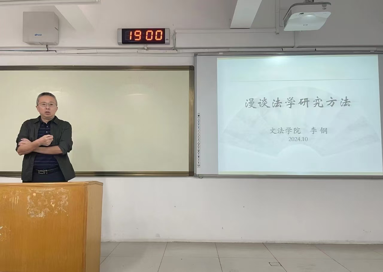 李钢老师以“漫谈法学研究方法”为题展开了关于论文学术规范和学术道德与创新之间关系的讨论。他首先强调了批判性思维和独立思考在学术研究中不可或缺的地位,并告诫同学们应努力掌握进行创新研究的方法。随后,李钢老师通过对教义法学和社科法学的的介绍为基础,详尽地介绍了当前法学研究的主要方法,并向同学们推荐了一系列有助于培养法学思维和训练法学研究方法的经典文献。在课程的最后部分,李钢老师对如何根据研究主题选择适当的研究方法提出了建议,使同学们受益匪浅。