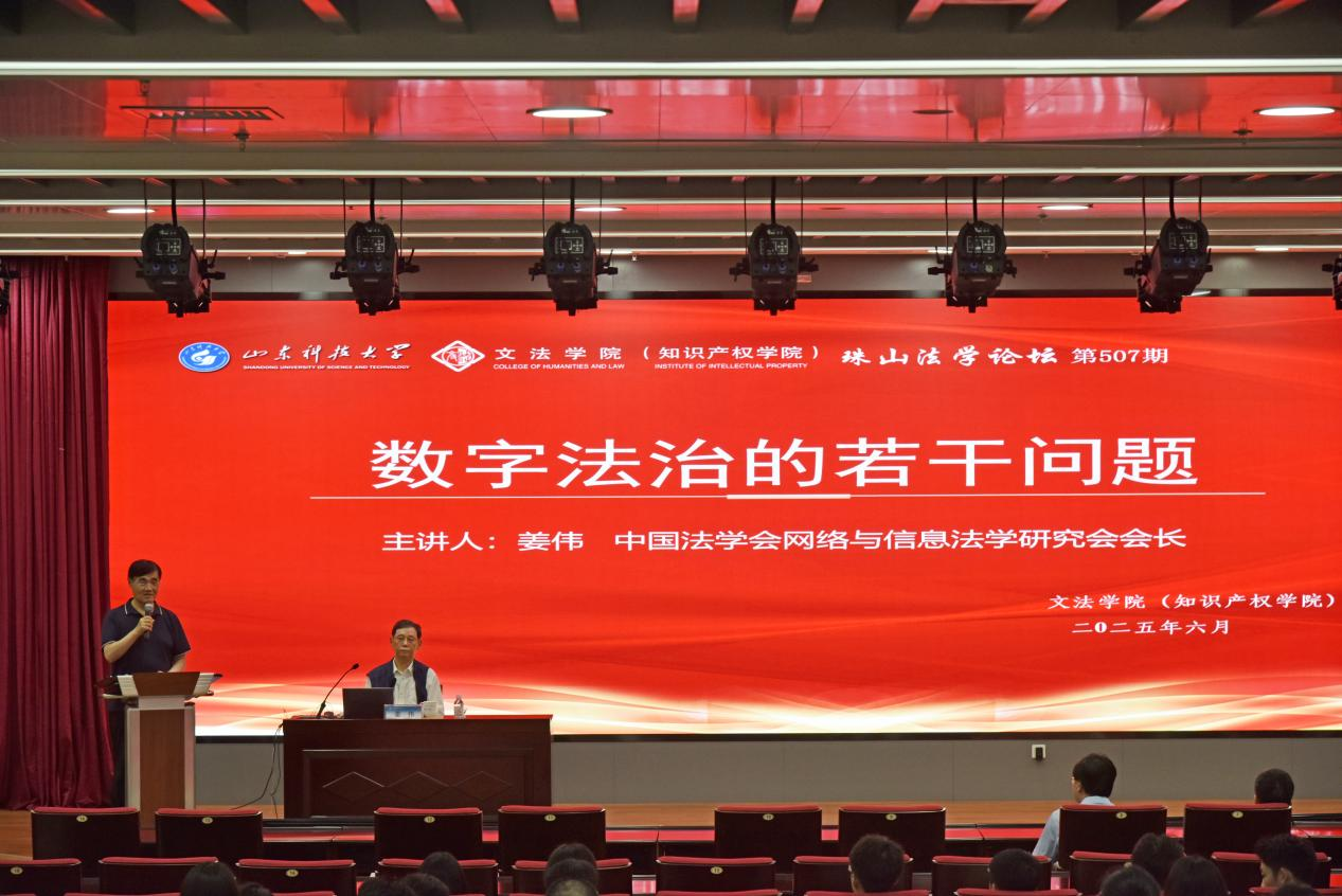 2025年6月27日下午,由伟德victor1946(知识产权公司)和山东省法学会科技法学研究会主办的“数字法治的若干问题”讲座在公司图书信息中心求新讲堂成功举办。本次讲座邀请中国法学会网络与信息法学研究会会长、知名法学专家姜伟主讲,伟德victor1946(知识产权公司)经理孙法柏教授主持,公司多位教师、硕士研究生参加。