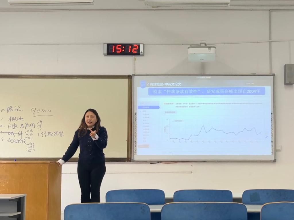 韩天竹老师以法学文献检索与文献综述为主题,从文献检索核心认知、论文框架搭建、人工智能工具运用、文献综述写作和规范引文等多个方面展开讲座。关于检索内容,韩老师指出,应当明确区分一次文献与二次文献,并且文献综述要聚焦二次文献,以避免陷入“引用法条证明观点”的逻辑误区。关于论文框架,她结合实例分析了常见的逻辑漏洞,强调了自圆其说的逻辑重要性。在人工智能工具应用方面,她强调要合理、谨慎运用AI工具,以便其高效辅助文献整理等工作。此外,韩老师还详细讲解了文献的获取与分析技巧,她以数据出境为例,阐述了应当综合利用各种途径进行高效检索,并具体演示了如何利用知网寻找研究热点、查找核心文献,同时她还强调了文献综述的后续整理。