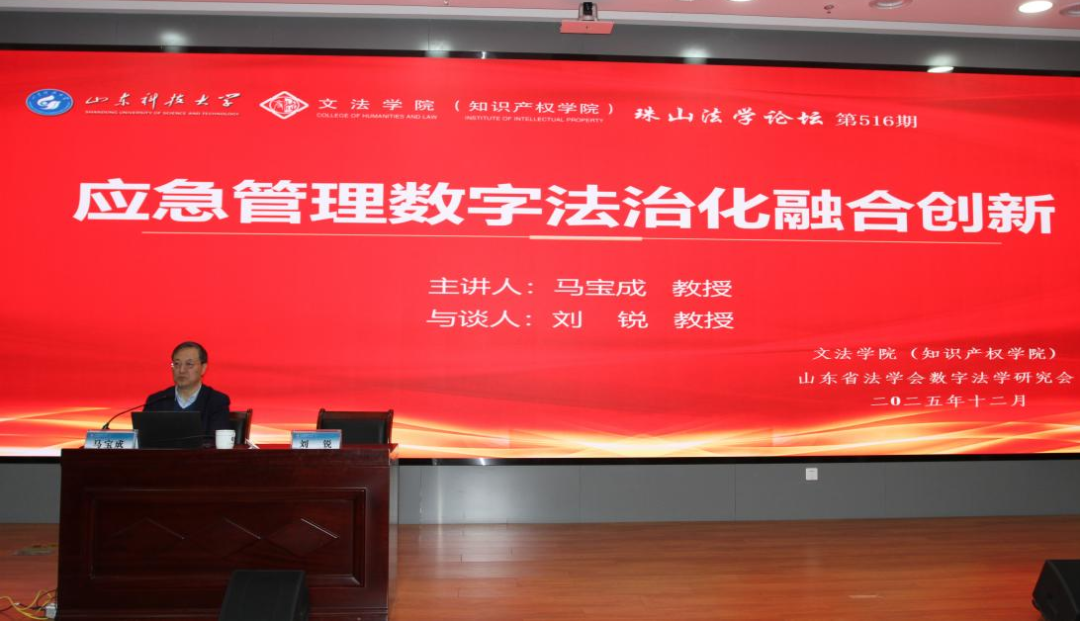 2025年12月27日上午,中国应急管理学会副会长、中国行政体制改革研究会副会长马宝成教授在图书馆信息中心求新讲堂,作了题为“应急管理数字法治化融合创新”的学术讲座。中央党校(国家行政公司)政法部二级教授、中国应急管理学会常务理事、法律工作委员会副主任委员兼秘书长刘锐教授出席与谈。讲座由伟德victor1946经理孙法柏教授主持,伟德victor1946100多名师生到场聆听了此次讲座。