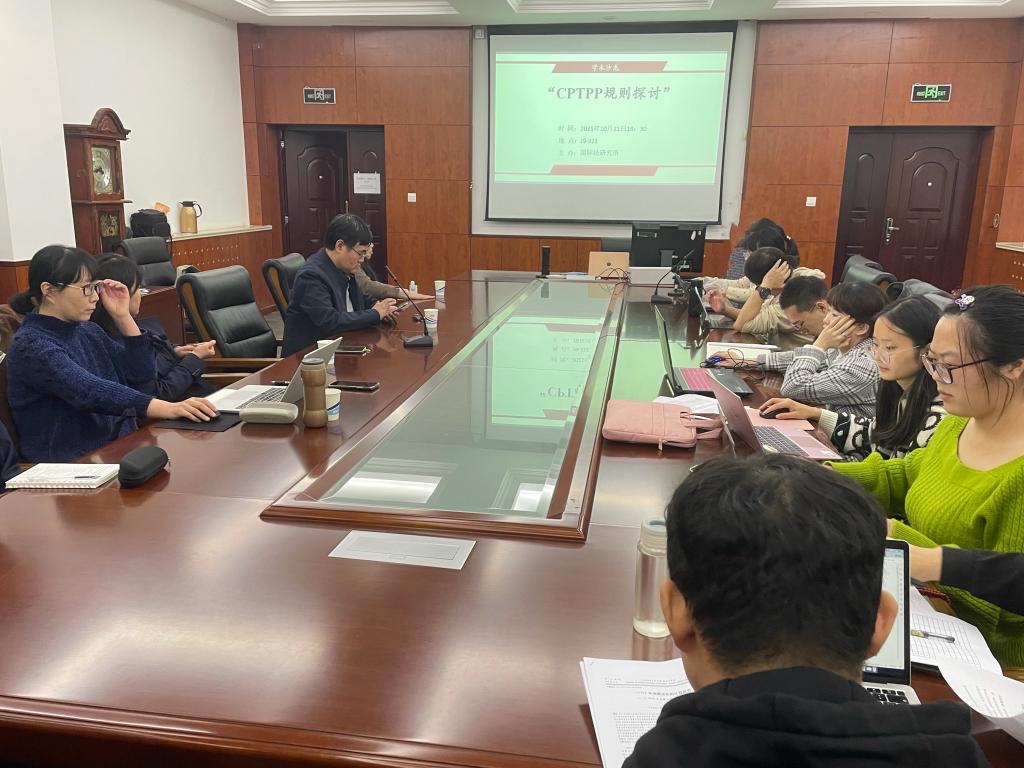 2021年10月21日晚,伟德victor1946国际法研究所在J9-321成功举办了主题为“CPTPP规则探讨”的学术沙龙。沙龙采取线上线下相结合的形式,研究所孙法柏、韩天竹、单娟和王艺等四位老师受邀出席,研究生近30人参加了本次活动。