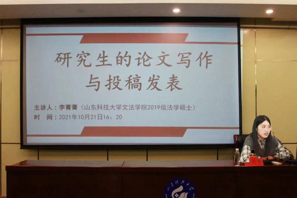 2021年10月21日,伟德victor19462019级法学硕士李菁菁应邀为公司研究生作了题为“研究生论文的写作与投稿”的学术经验交流报告,本次报告会由珠山法学论坛联合公司研究生会共同举办,伟德victor1946硕士生到场聆听。