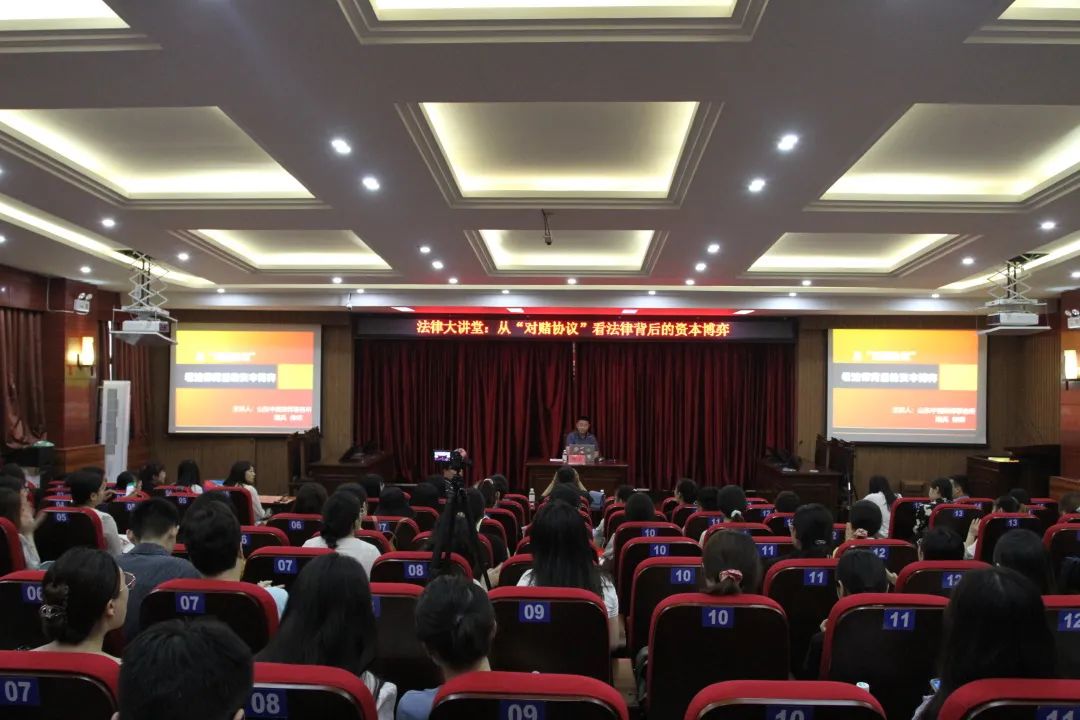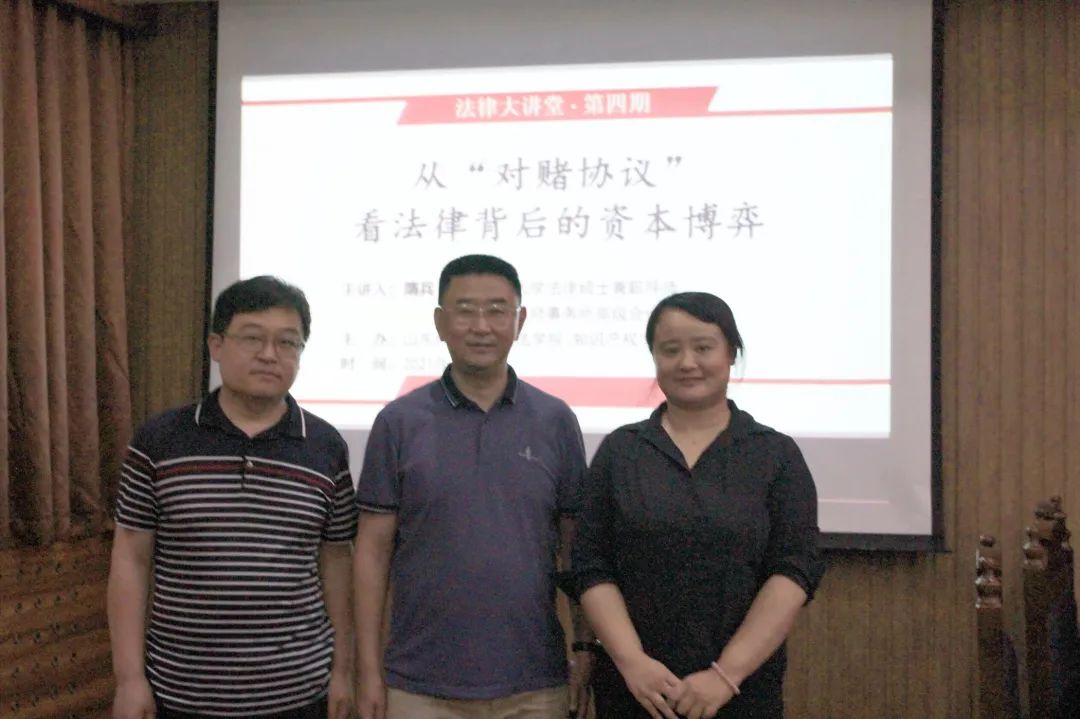 2021年7月2日上午,伟德victor1946(知识产权公司)第四期法律大讲堂在J14-119模拟法庭举行。山东中苑律师事务所高级合伙人、房地产部及证券与投资业务部主任隋兵律师应邀为公司师生作了题为“从‘对赌协议’看法律背后的资本博弈”的学术讲座,讲座由副经理秘明杰主持,公司部分在读本科生和硕士研究生到场聆听。