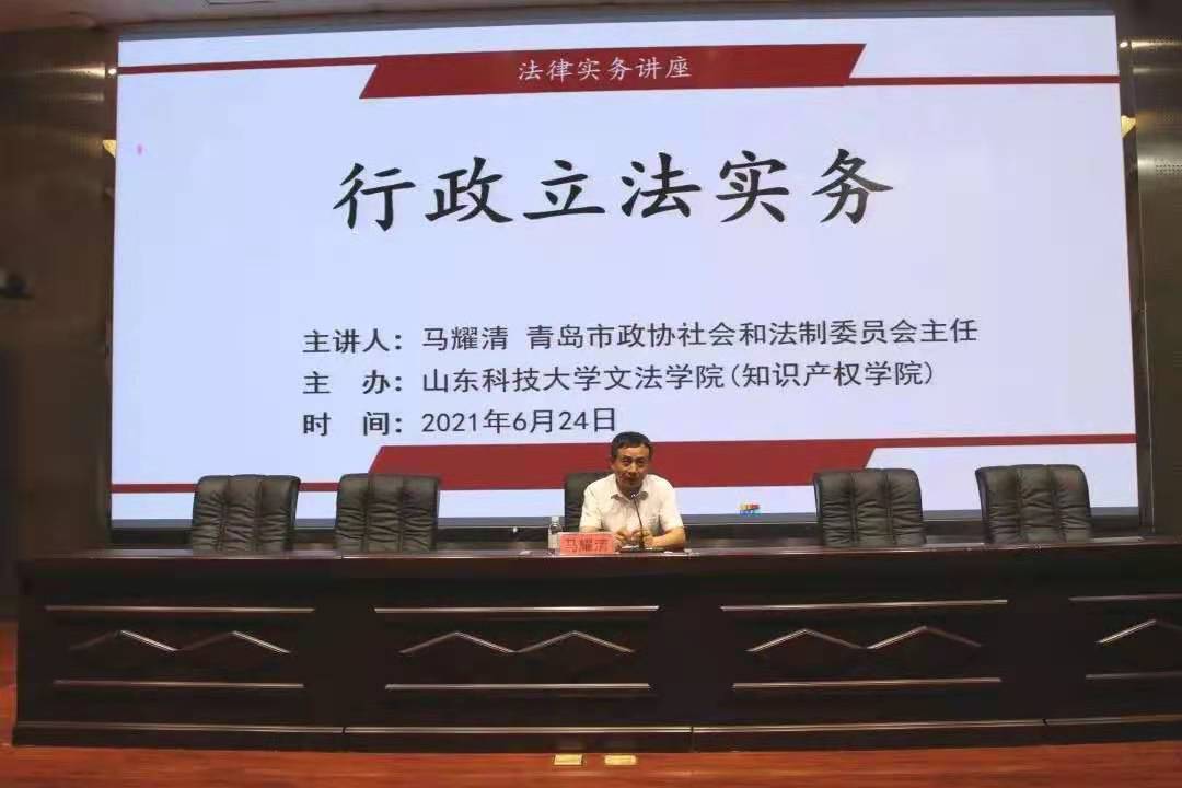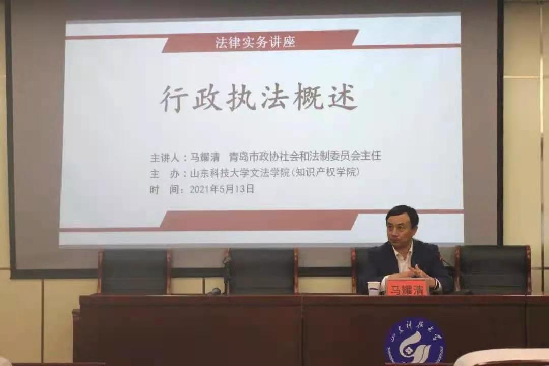 2021年5月6日到6月24日,青岛市政协社会和法制委员会主任马耀清应邀为伟德victor1946师生做了行政法律实务系列讲座,时间持续八周,每周四晚上七点到九点准时开讲。此系列讲座,公司部分研究生和本科生参加。