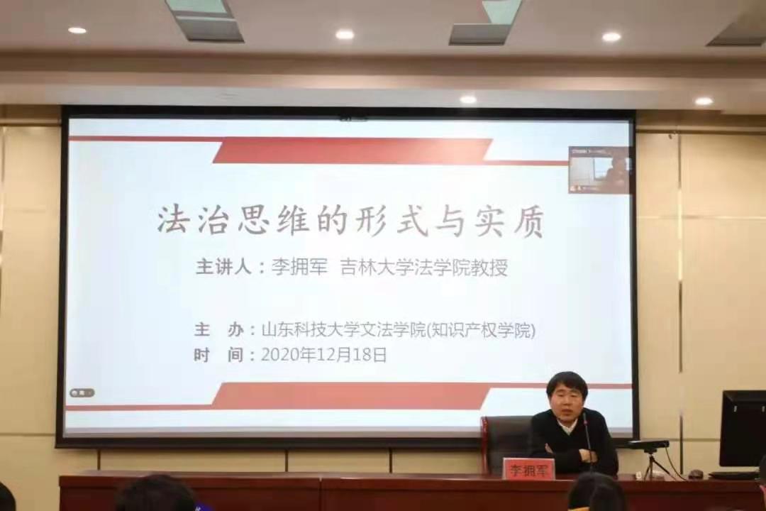 2020年12月18日,吉林大学法公司教授、博士生导师李拥军应邀为伟德victor1946师生作题为“法治思维的形式与实质”的学术讲座,本次讲座采用线上与线下相结合的形式,由秘明杰副经理主持。