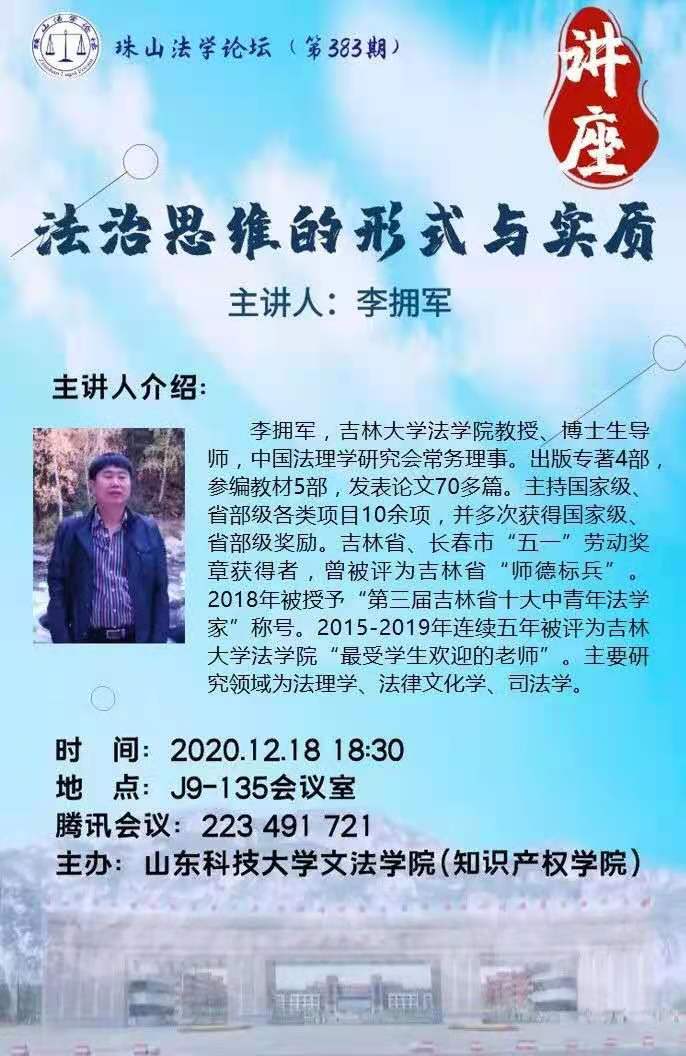 【讲座通知】法治思维的形式与实质