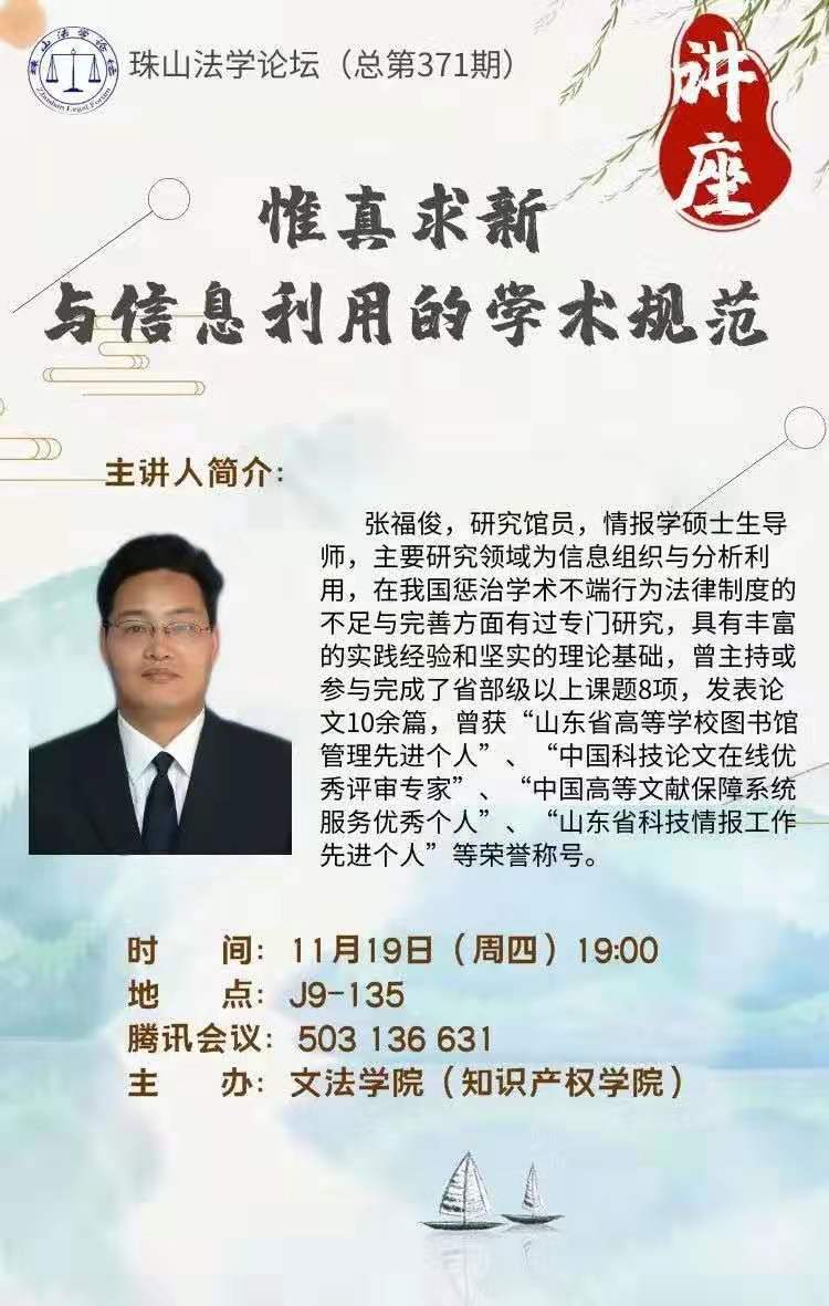 【讲座通知】惟真求新与信息利用的学术规范