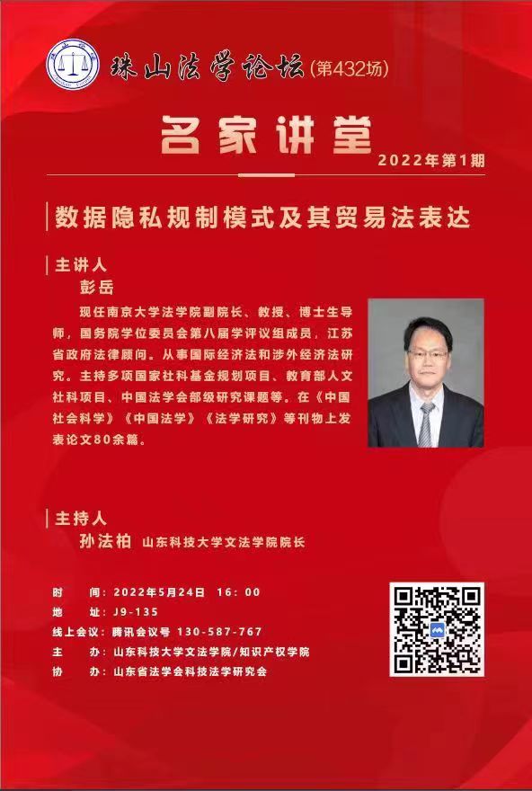 【珠山法学论坛·名家讲堂2022年第1期】数据隐私规制模式及其贸易法表达