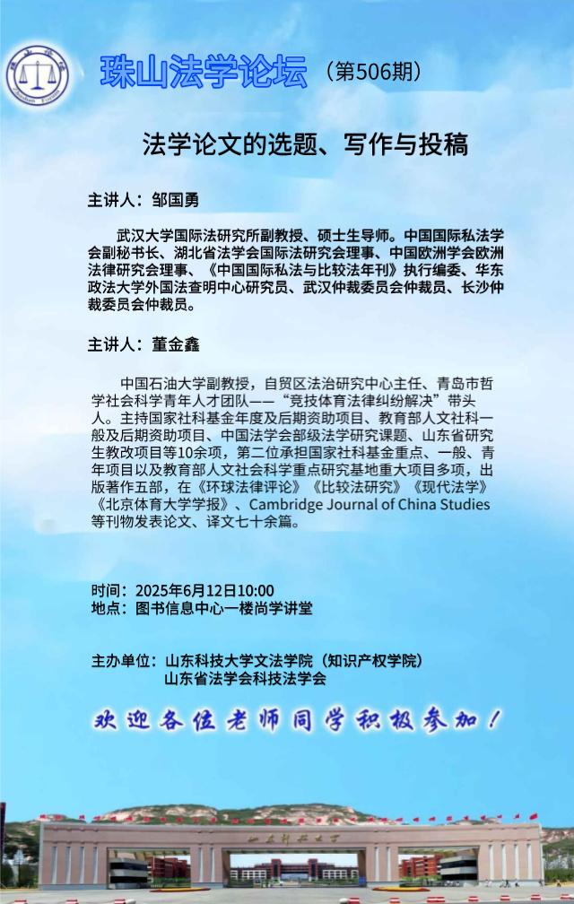 【讲座预告】法学论文的选题、写作与投稿