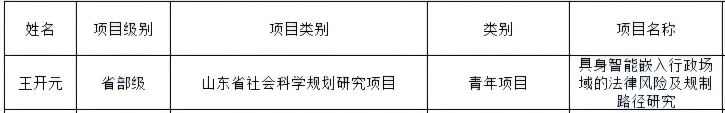 近日,山东省哲学社会科学工作办公室公布了2025年山东省社会科学规划研究项目立项名单,公司教师王开元提交的项目获批立项。