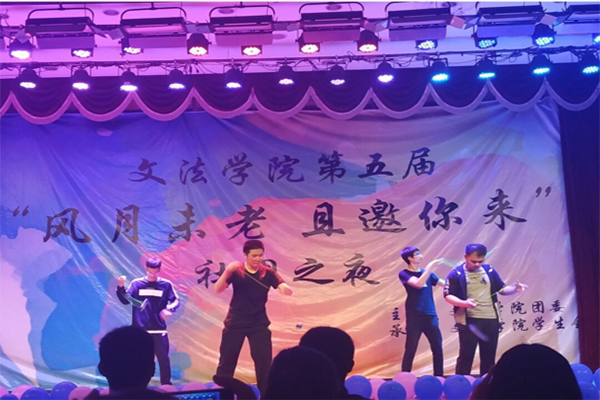活动开始前半个小时,已有很多同学陆陆续续到达现场,秩序井然地坐在座位上,工作人员则在紧锣密鼓地进行最后的准备工作。下午4点,活动正式开始。乐起舞动,激情四射的街舞串烧《kongfu》and《likely》和交谊舞《热火舞秧》更是调动起了全场气氛,震撼了在场的观众,把现场气氛推向高潮。演出同学那娴熟而动感的舞步、相互之间的配合以及他们与音乐完美的融合,无不感染在场的所有观众,牵动着每一位观众的心。小品《善恶终有报》也让现场爆笑不断,并使同学们在笑声里进行对人性的思考。歌曲,街舞,小品,B-box,魔术,合唱轮番上演,现场气氛热烈,互动频繁。同学们通过这一个个的节目,享受到一场视觉与听觉的盛宴。