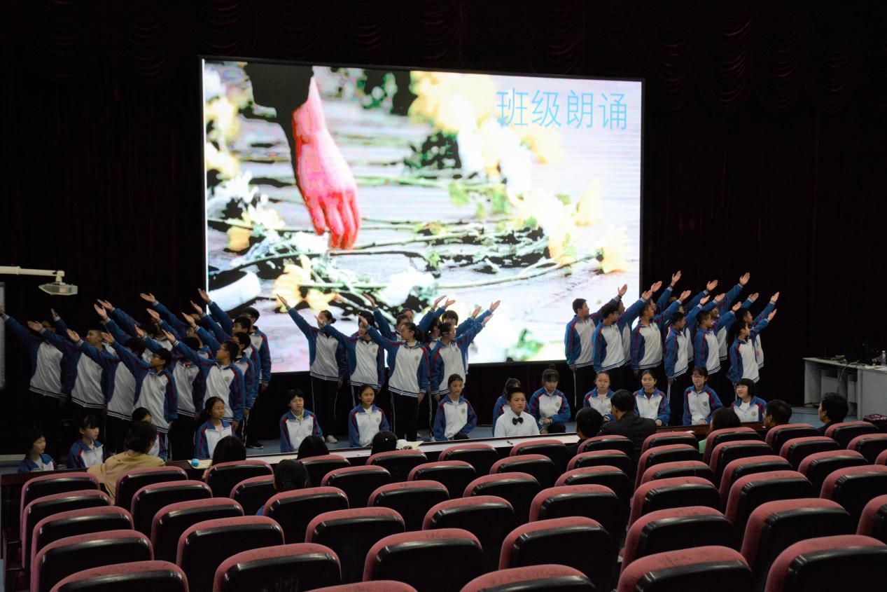 活动伊始,由孙超凡同学进行朗诵表演,他声情并茂的朗诵感染了在座的老师以及同学,令人不禁沉浸其中。而后主持人宣布比赛正式开始,致远中学的五个参赛班级轮番上台表演,朗诵或优美舒缓,或豪情万丈。班级赛过后,是自主报名的同学以小组为单位进行朗诵,各小组举止大方,感情充沛,感染力强,现场效果良好。
