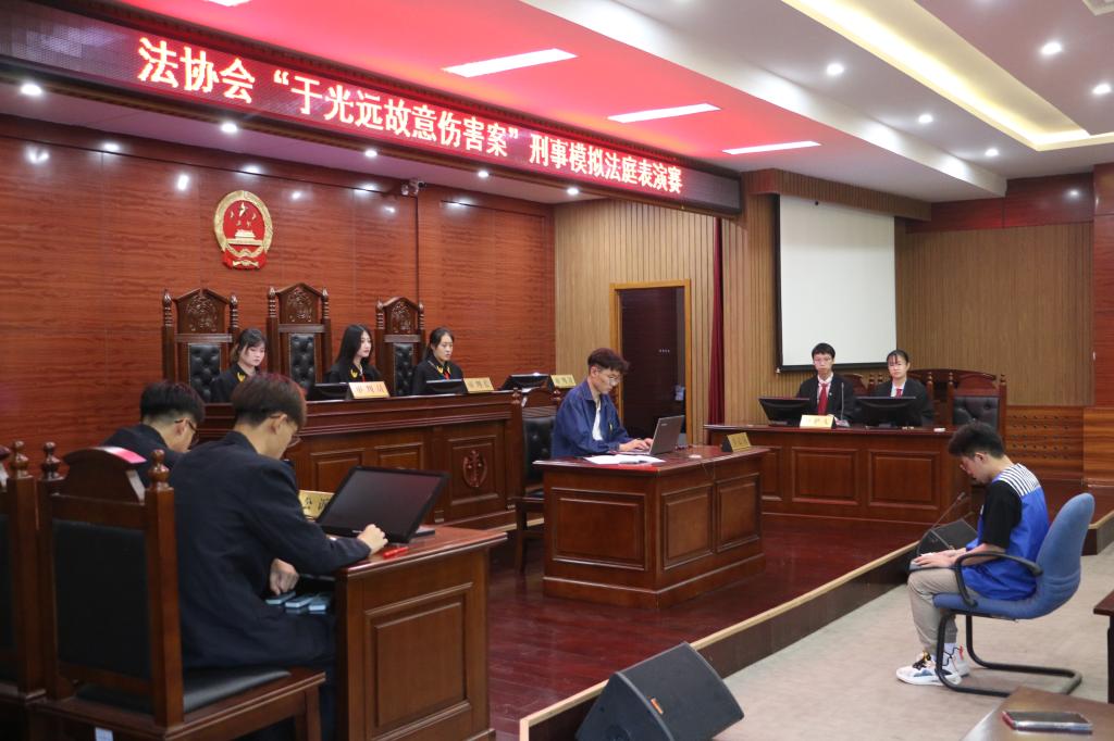 为让法学专业的同学们体验真实案例审理过程,增强对法律审判的实践认知,进一步提高其自身专业素养,6月24日,由伟德victor1946法协会组织的“于光远故意伤害案”模拟法庭表演赛在J14模拟法庭举行,法学系杨厚瑞老师莅临现场指导。