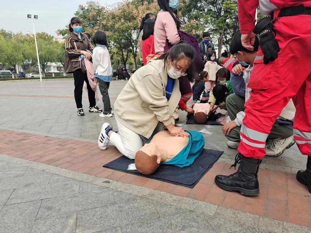 “按压频率为每分钟100到120次,按压深度应达到5到6公分,每次按压的时间应是0.5或0.6秒,按压过程不应间断……”工作人员现场模拟示范心肺复苏、人工呼吸操作要领,为应对紧急病患赢得“黄金”救援时间。在场居民们认真观看心肺复苏的操作步骤,并大胆体验学习,纷纷表示“又get一项新技能!”