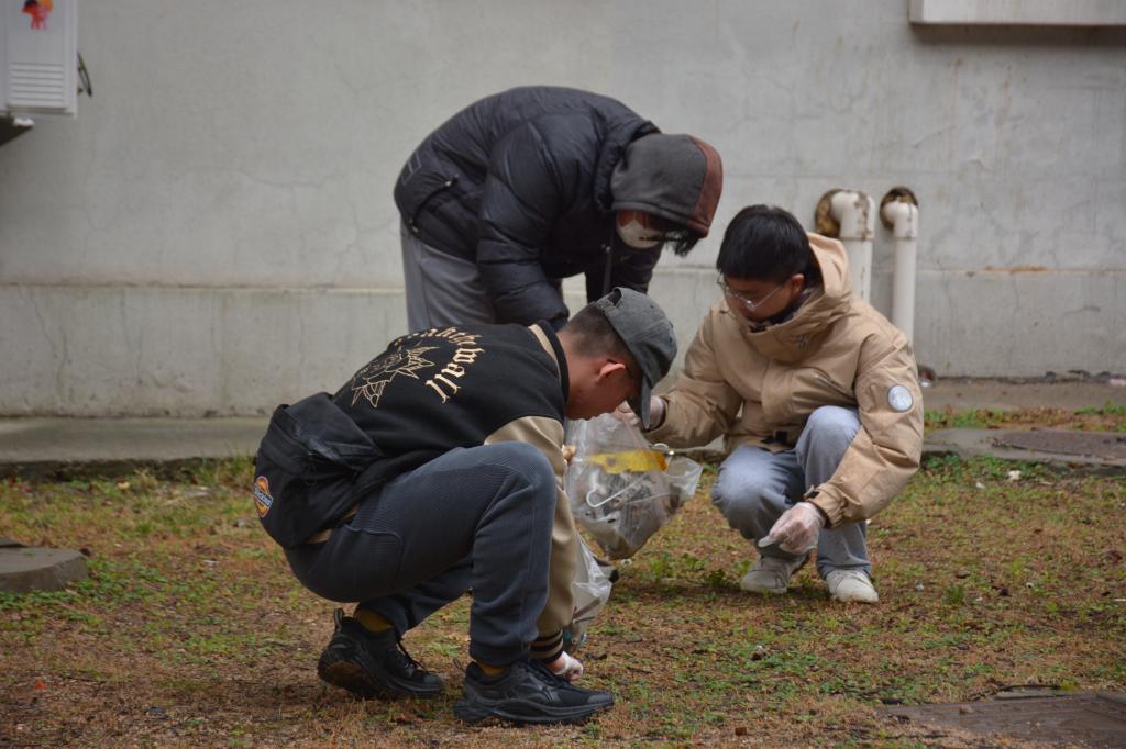 在负责人进行简单的任务分配后,志愿者们便拿好清扫工具对各自负责的区域进行认真清扫,捡拾附近花圃、树丛等处的“隐匿”垃圾和地面上散落的枯枝落叶、纸屑、饮料瓶等。在打扫过程中,细雨霏霏,但是同学们仍旧热情高涨,干劲十足,活动现场轻松活跃,井然有序。在同学们的共同努力下,卫生区变得干净整洁,焕然一新。