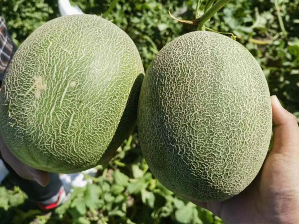 本着“助力乡村振兴”的初心,解决农民困难才是当务之急。小队成员即刻前往就近的十三户村一家农户进行实地考察。一眼望去是大面积成行成垄的瓜田,哈密瓜上细密的纹路却彰显了它的非凡。经过询问,得知这是前几年才引进的新品种——“西州蜜25号”。和一般的哈密瓜不同,以往的哈密瓜由于新疆地区气候干燥以及昼夜温差极大,很容易出现裂口和沙瓤化,新品种则是消除了这种弊端。
