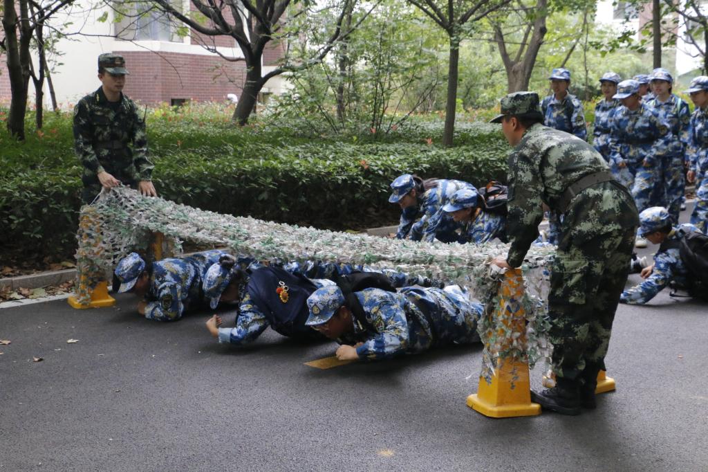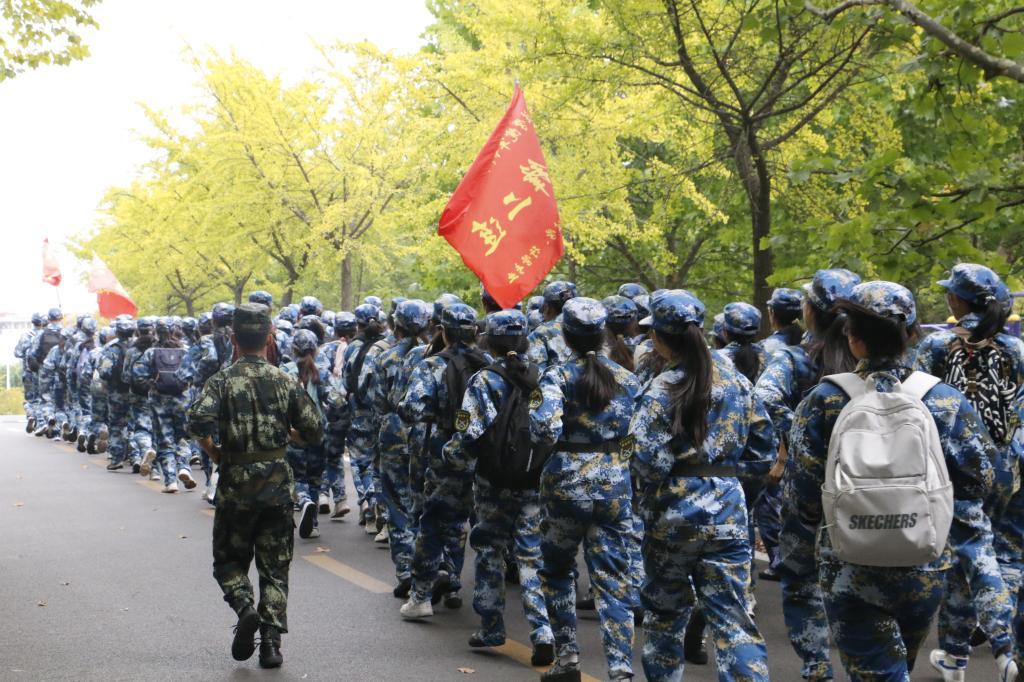 行军途中,新生们一身迷彩衣,迈着矫健的步伐,唱着嘹亮的军歌,精神饱满,志气飞扬。一路自风雨操场始,途经思贤路、笔架山、家属区、南环山路、致远路、公司东门,最后返回风雨操场集合,全程7公里。拉练过程中,设有“烟雾迷障”“防空隐蔽”“匍匐前进”等模拟场景,在教官指导下,同学们令行禁止,全神贯注,有序地完成了本次拉练的全部项目训练。在2个多小时的拉练过程中,同学们不掉队、不懈怠,相互鼓励、团结鼓劲,辅导员和志愿者们随拉练队伍步行全程,时刻关注员工身体情况。