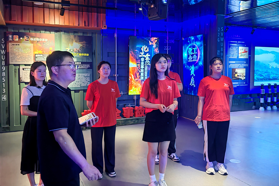 图为团队成员在鲁南高科技化工园区法治教育基地学习法治与安全生产知识